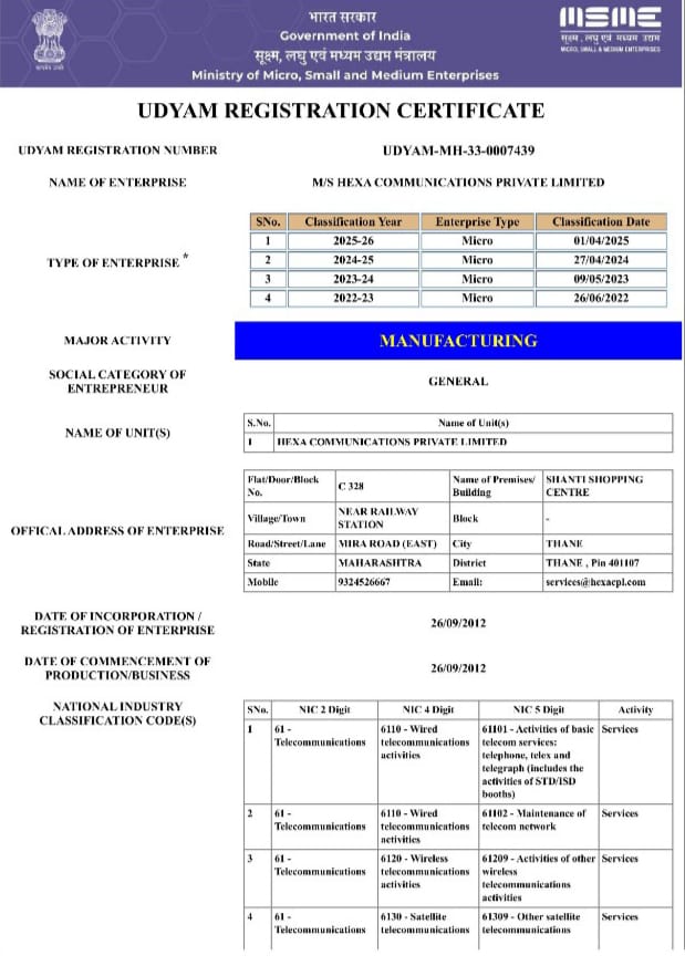 HEXA COMMUNICATIONS PRIVATE LIMITED (M/s Hexa Communications Pvt Ltd) is a registered Private Limited Company and MSME that has been operational since 2012. We are proud to hold esteemed certifications including ITIL Expert, Project Management, ISO, NSIC, PMO, and Make in India, underscoring our commitment to quality and excellence in our field. As a trusted reseller of Multi-brand telecommunication products, Hexa Communications offers a wide range of solutions, including phones from leading brands such as Siemens, Unify, Avaya, and Polycom. With an extensive client base comprising both end-users and dealers, we cater to customers across India and internationally.